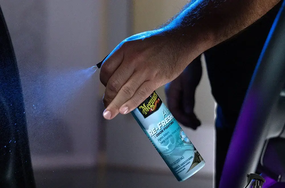 Meguiar’s New Car Air Refresher Spray elimina olores persistentes del interior del vehículo y deja un aroma fresco a “carro nuevo”. Su fórmula avanzada neutraliza olores a nivel molecular, eliminando aromas de mascotas, comida, humedad, cigarrillo y más.